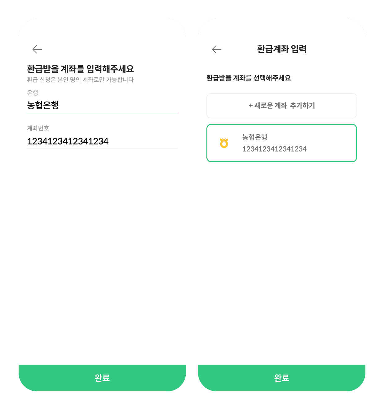 목록에서 해당 계좌를 선택한 후 [완료] 클릭