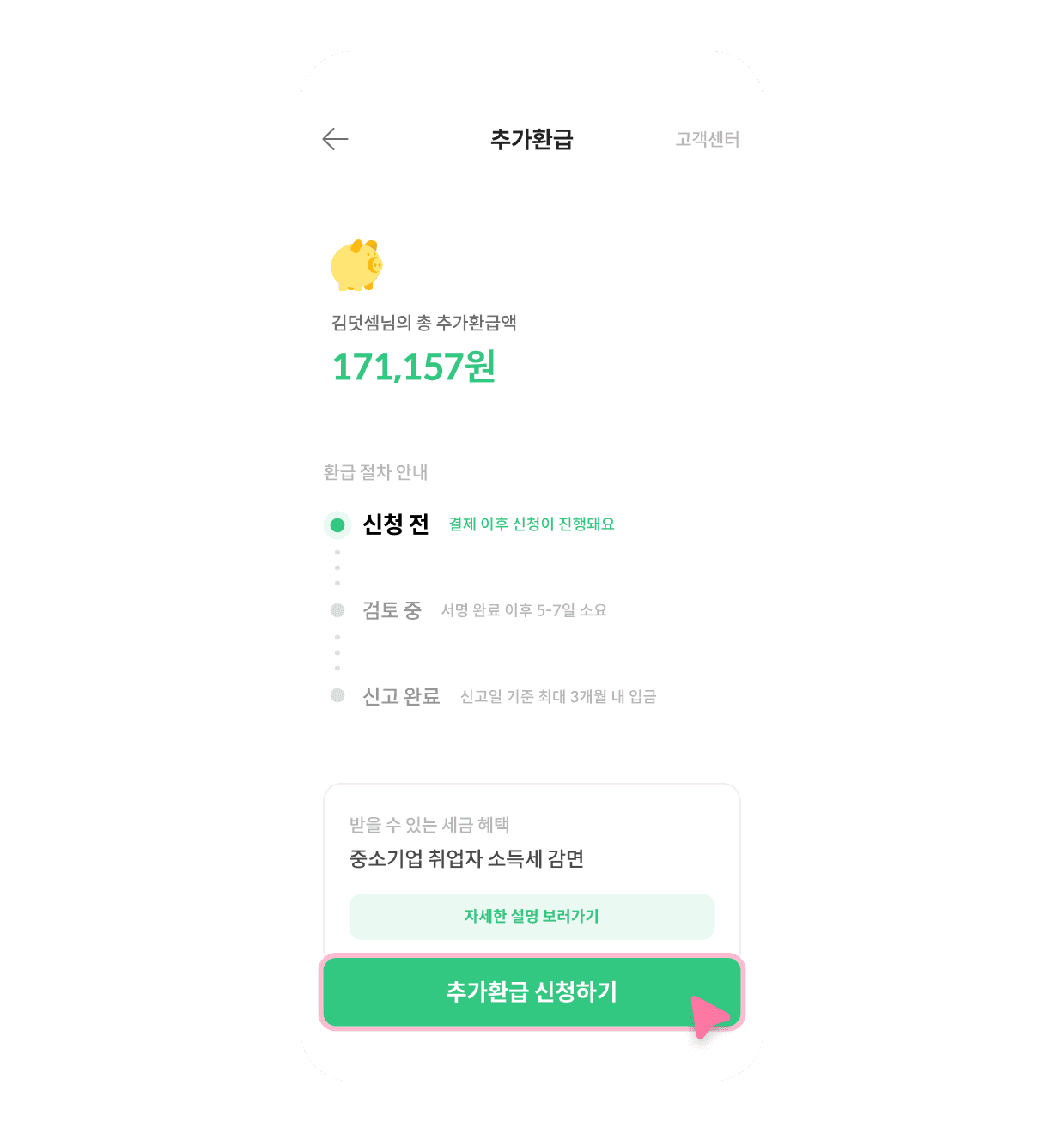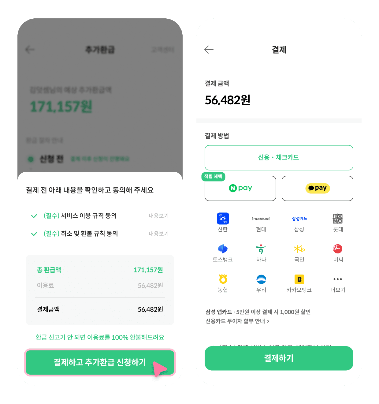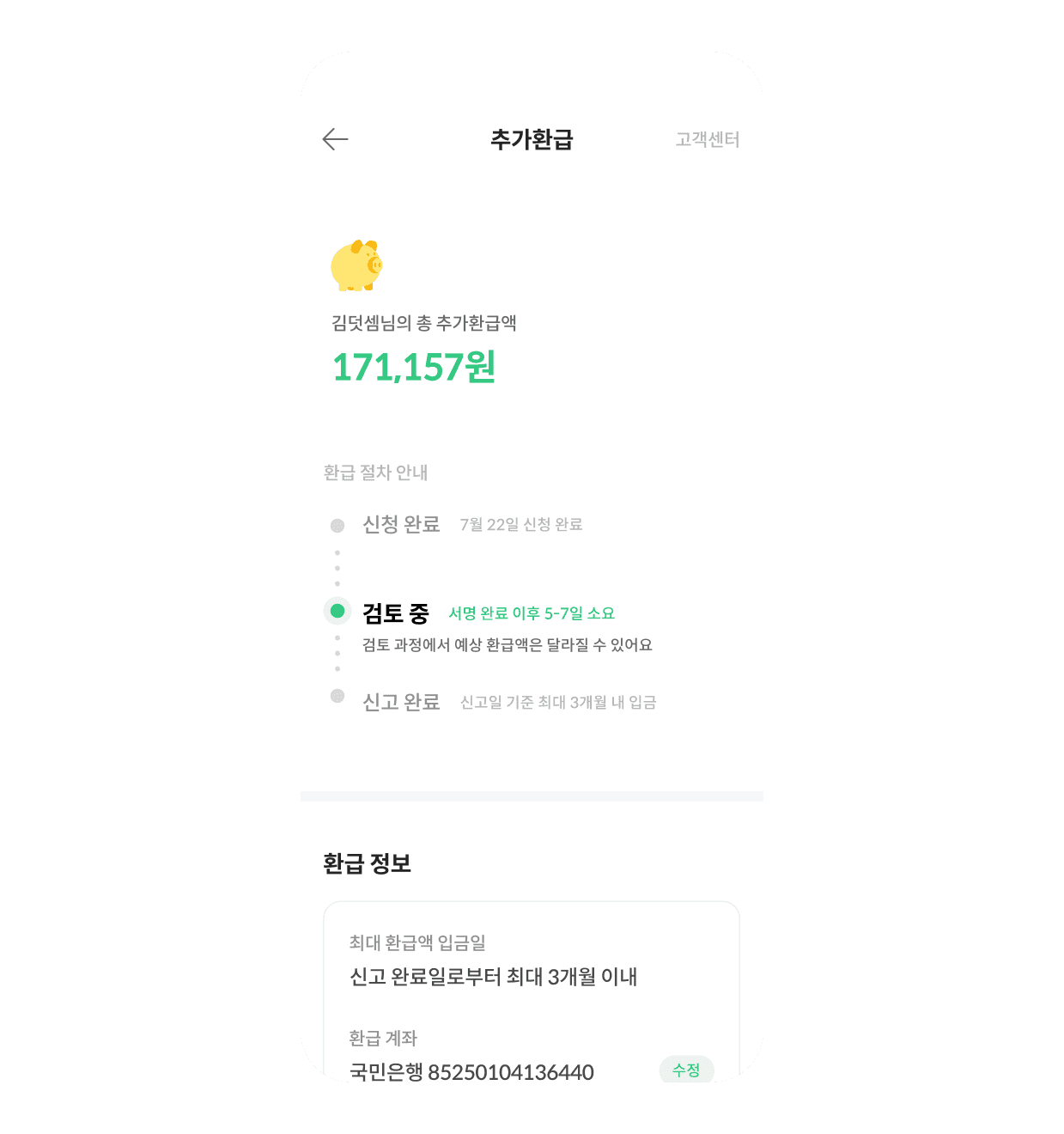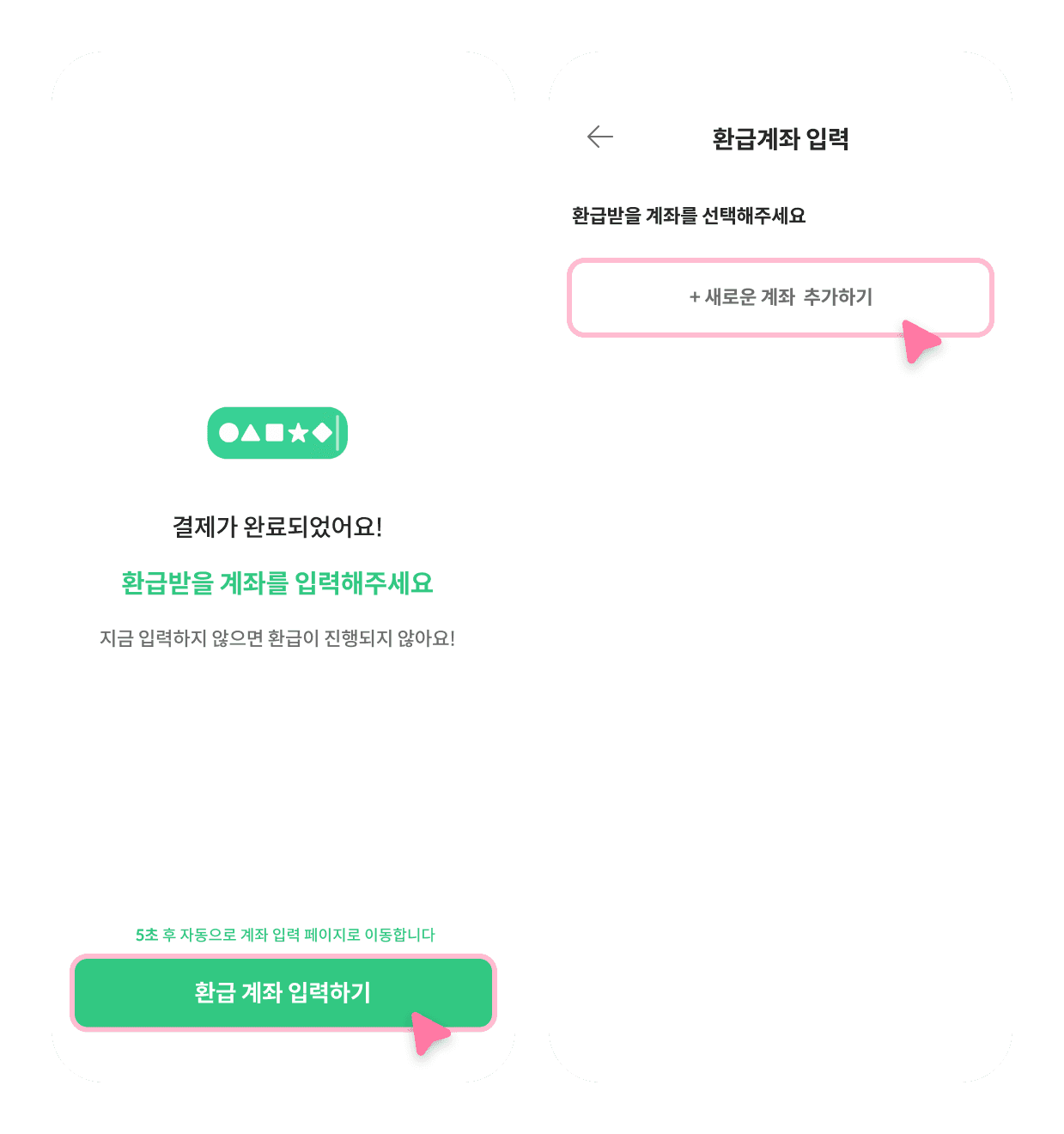 결제 완료 후, [환급 계좌 입력하기]클릭